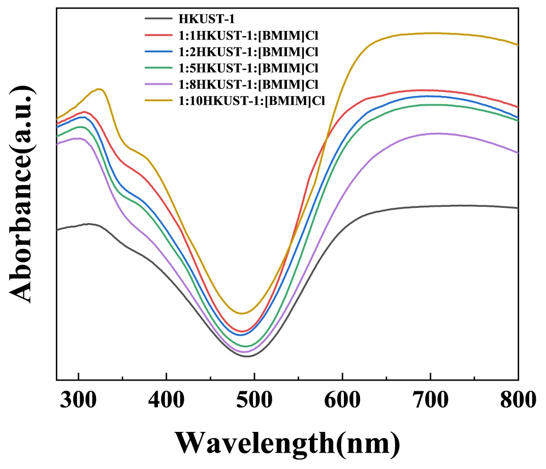 图5. HKUST-1和不同比例HKUST-1:[BMIM]Cl样品的DRS图