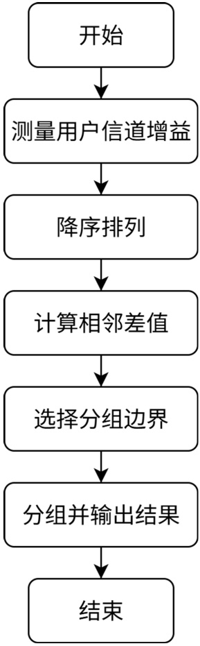 传统方法首先将各用户的瞬时信道增益按降序排列,得到有序序列;随后计算相邻增益差值,并在差值最大的前K − 1处插入分组边界,使每组内最强与最弱用户的信道差异最大化,以减小串行干扰消除的误差传播[9],如图1所示。该过程仅涉及一次排序与差值比较,实现简单,但阈值依赖经验设定,且当信道分布出现平台区时易产生规模悬殊的群组,难以兼顾吞吐量与公平性[10]。