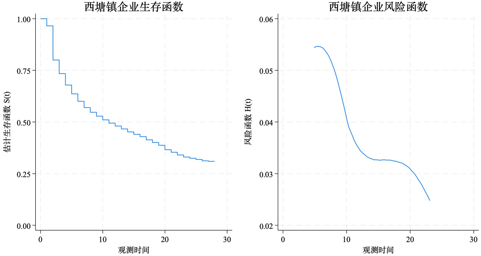 最后,生存分析理论构成了我们计量检验的方法论基石。它特别适用于处理企业“进入–退出”这类“时间–事件”数据,能够有效解决右删失问题,并动态估计各因素对企业“死亡”风险率的时变影响,从而精准捕捉旅游开发影响的动态轨迹与滞后效应。