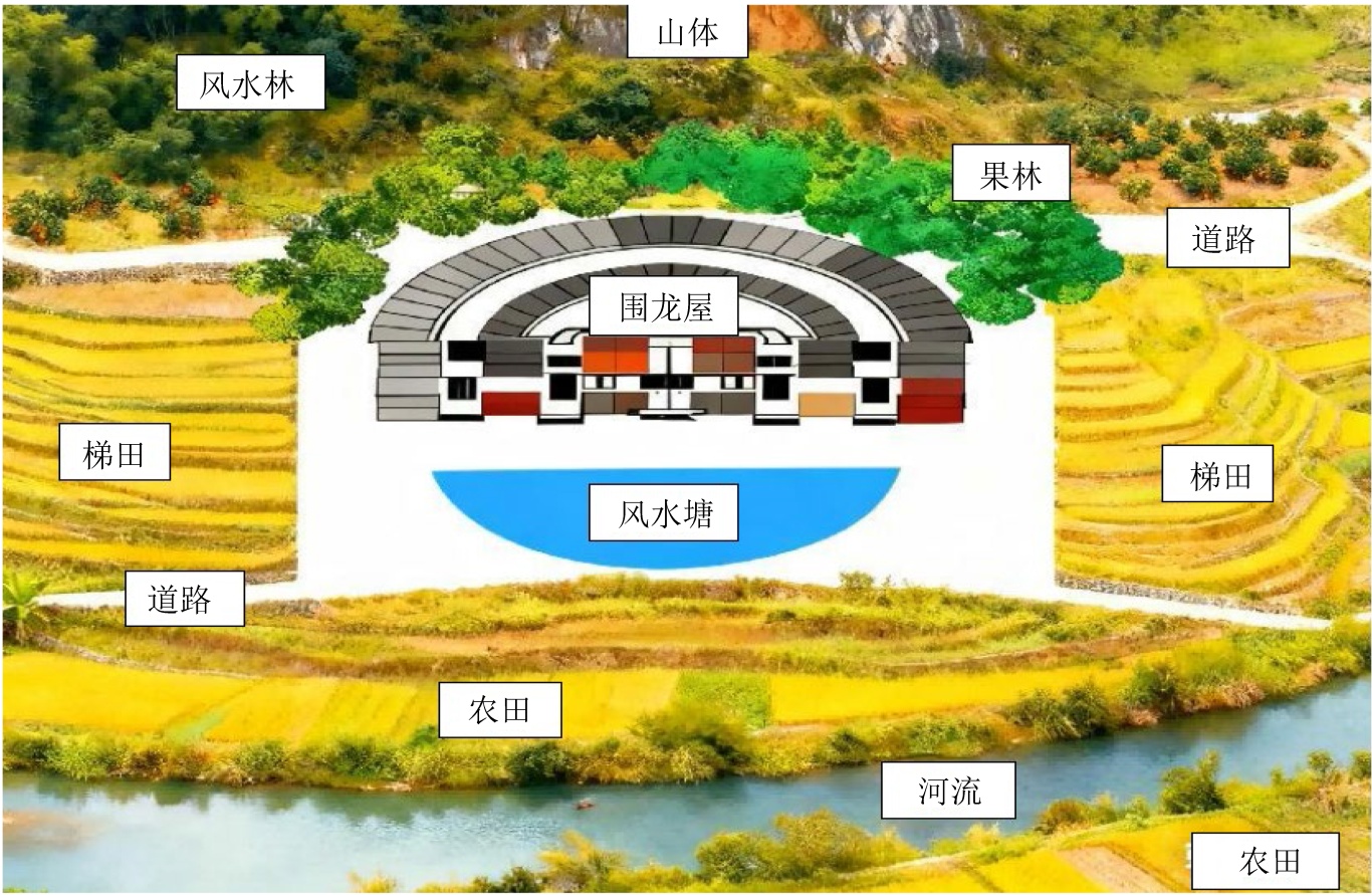 乡村振兴战略(2018)将“生态宜居”“乡风文明”作为核心目标,乡村景观营造成为统筹人居环境改善、地域文化传承与生态系统保护的关键抓手[1]。2024年,相关部门进一步明确“生态保护与文化振兴深度融合”的发展导向,强调传统村落“活态传承”与“生态价值转化”的双重任务。梅州地处粤闽赣三省客家文化交汇核心区,山地丘陵占比超75%,客家人口占比95%以上,其乡村景观兼具“亚热带山地垂直生态系统”与“客家宗族文化载体”的双重属性——围龙屋“背山面水”的布局适配自然地理格局,梯田“依山筑埂”的营造技术实现水土保持与粮食安全的平衡,客家山歌“田间传唱”的形式则构建了文化与景观的情感联结[2]。然而,城市化进程加速引发系列问题:基于GIS数据解译,2019~2023年梅州客家乡村耕地面积减少8.5%,生态斑块破碎化加剧;民俗参与率较2010年下降60%,山歌传承人平均年龄超60岁;40%乡村旅游点采用“古村落 + 农家乐”的同质化模式,20%因缺乏特色陷入闲置 [3]。如何协同破解生态保护、文化传承与功能优化的矛盾,成为梅州客家乡村振兴的核心议题。