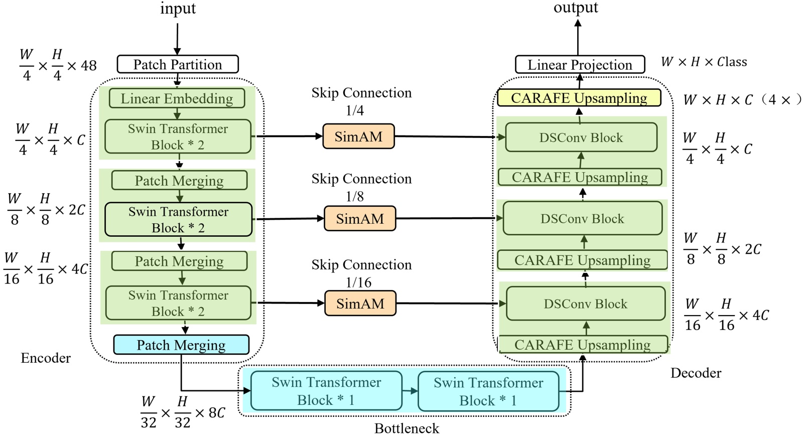 SwinUNet + SimAM + DSConv + CARAFE |