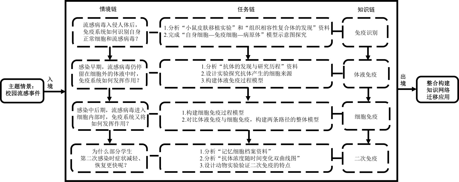 图2. 基于境脉教学的“特异性免疫”教学设计思路