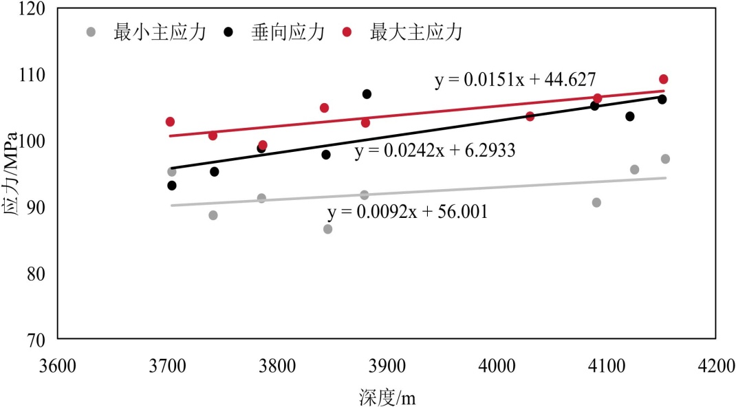 图5. 三向应力与埋深的关系