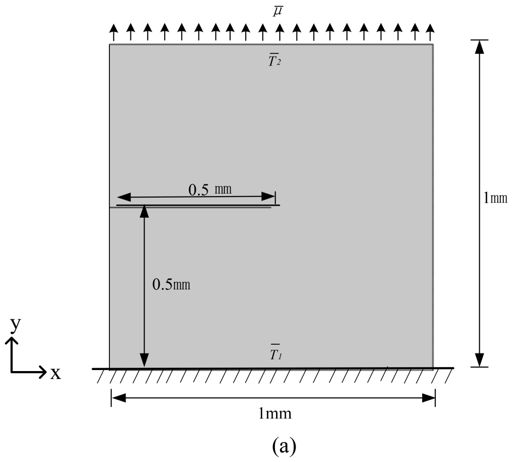Figure 4. Boundary conditions for a square plate with a single-sided notch (a) Finite element meshing (b)