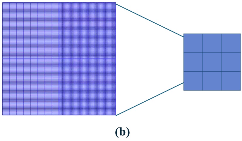 图4. 单边缺口导热方形板的边界条件(a)有限元网格划分(b)
