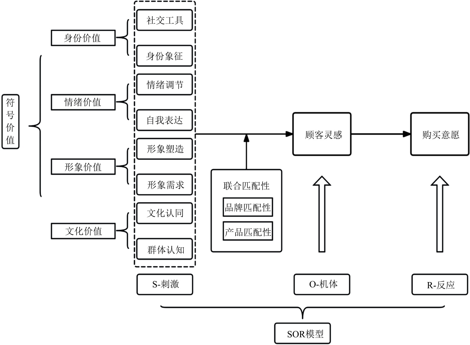 文化价值→顾客灵感→购买意愿 |