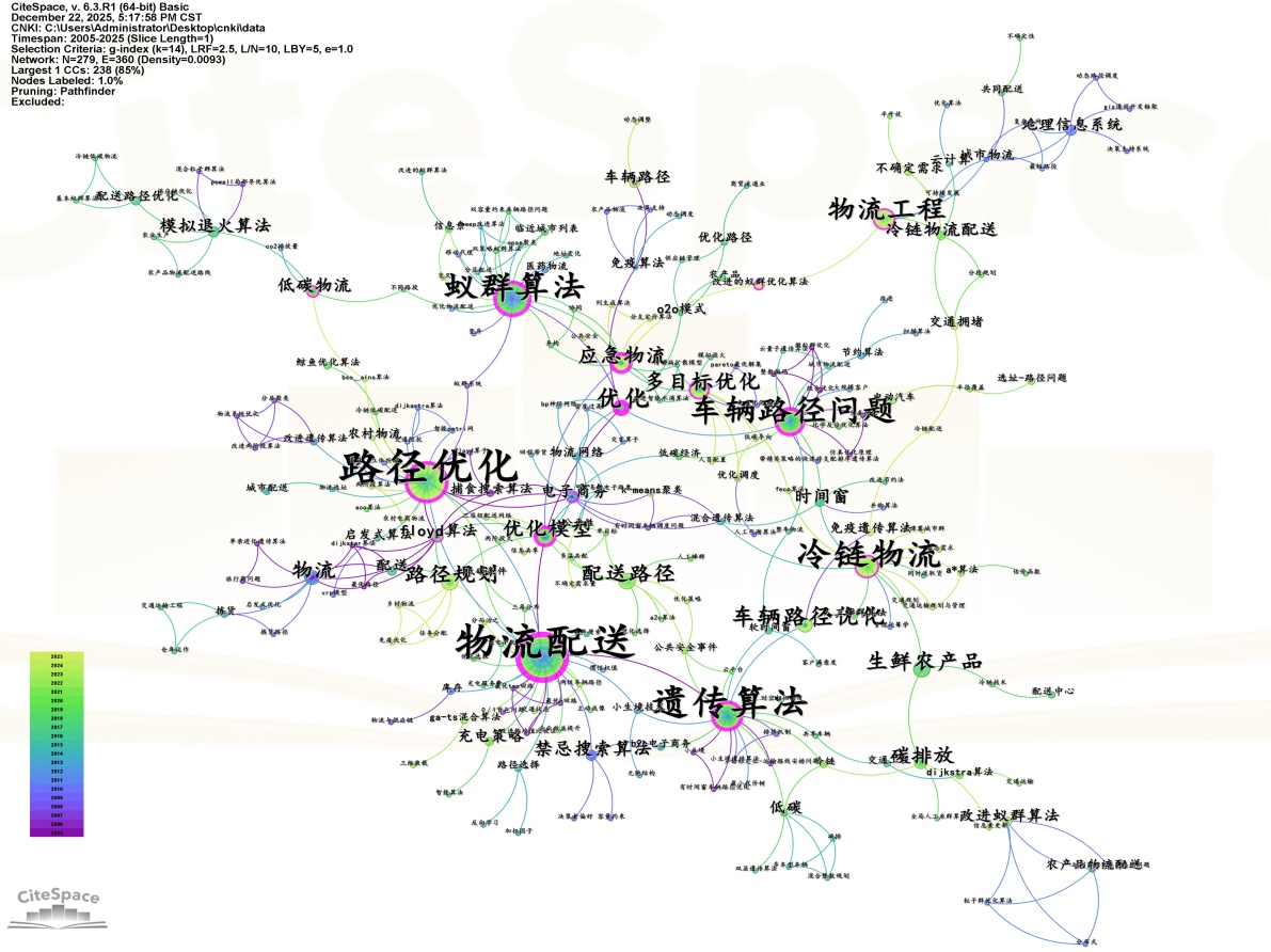 Figure 5. Knowledge association graph of logistics distribution and path optimization from 2005 to 2025