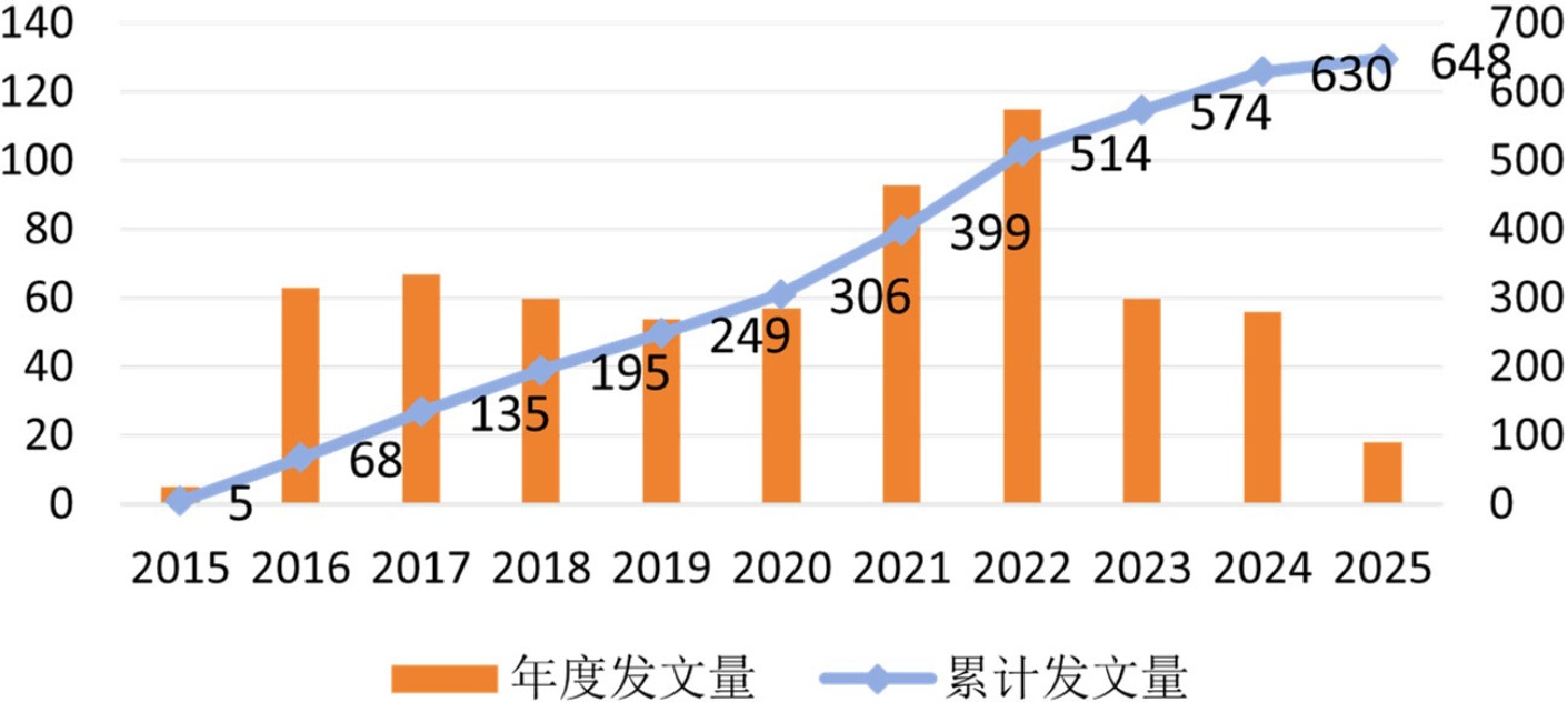 图1. 2015~2025年6月发行绿色债券领域发文数量