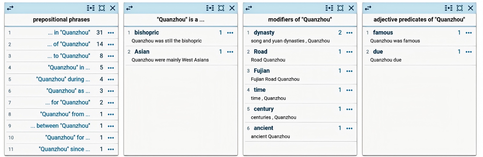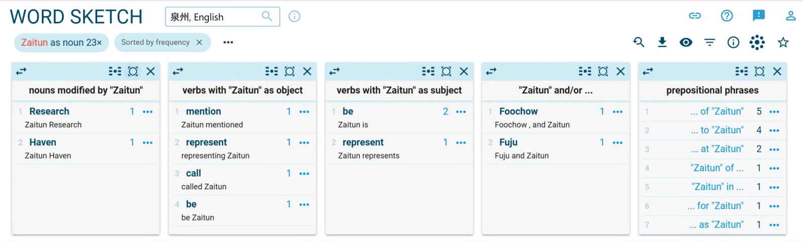 在泉州对比语料中“Quanzhou”和“Zaitun”呈现出较为稳定的搭配模式,见图2。