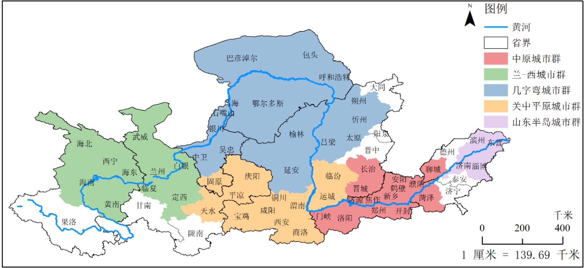 图1. 黄河流域地级市和城市群