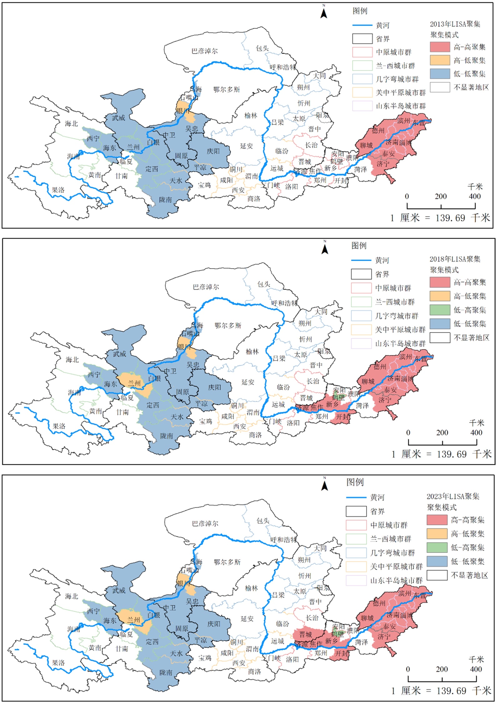 图3. 部分年份LISA聚类图
