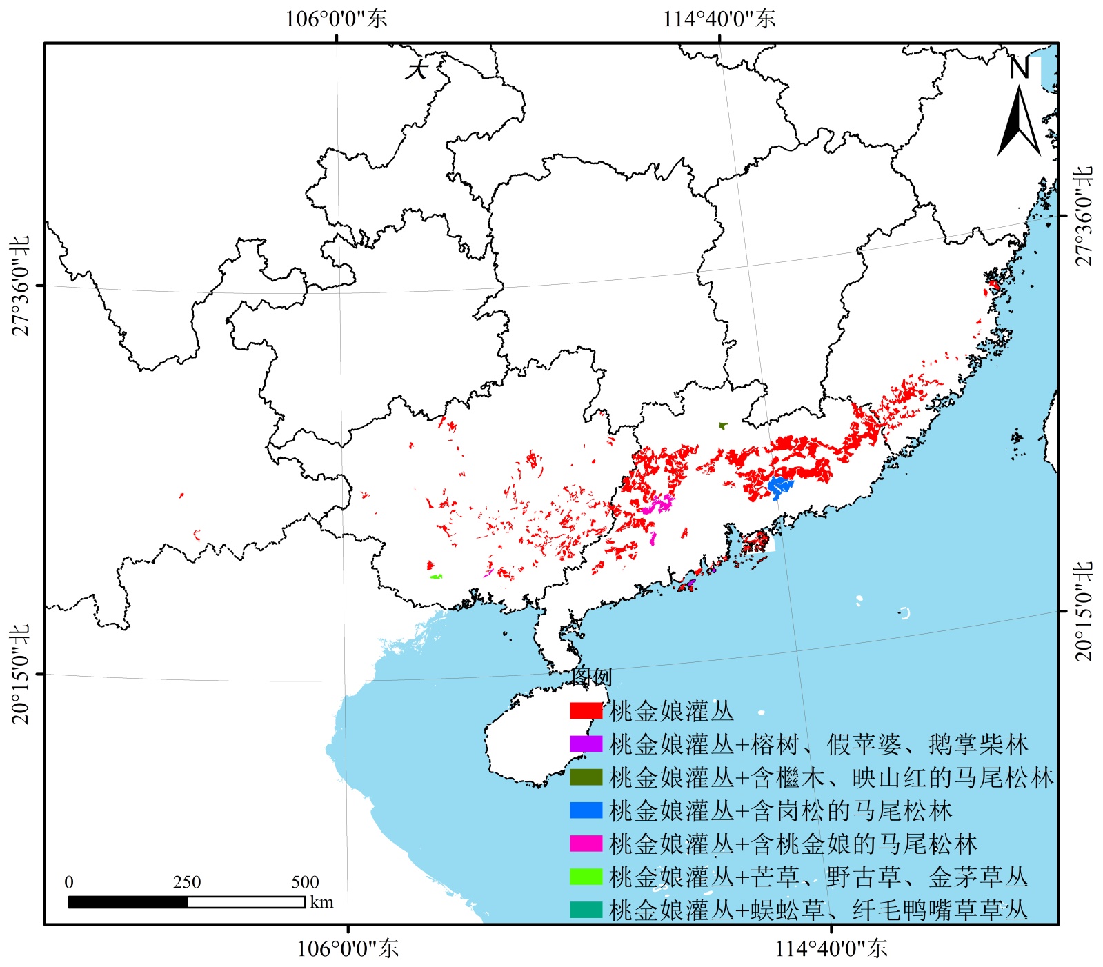 图1. 桃金娘灌丛植被地理分布图