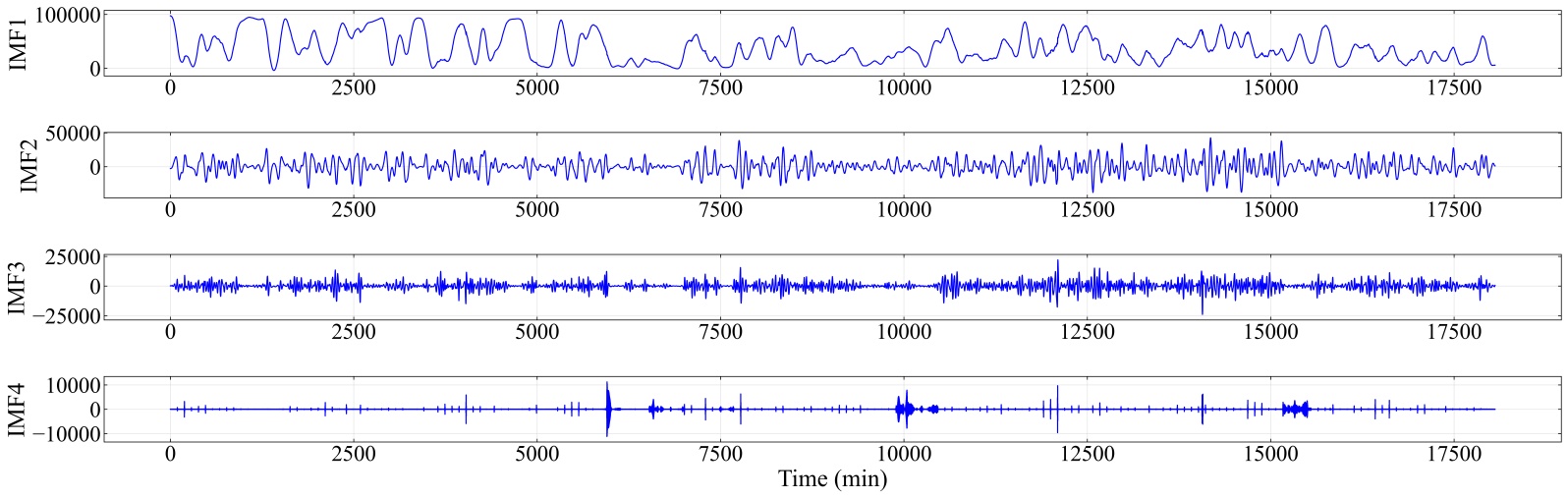 1) 通过对历史风电数据进行分解与重建,可降低原始数据固有的波动性和随机性,为风电预测模型提供更平滑、更规律的输入,从而提升预测模型的准确性和稳定性。