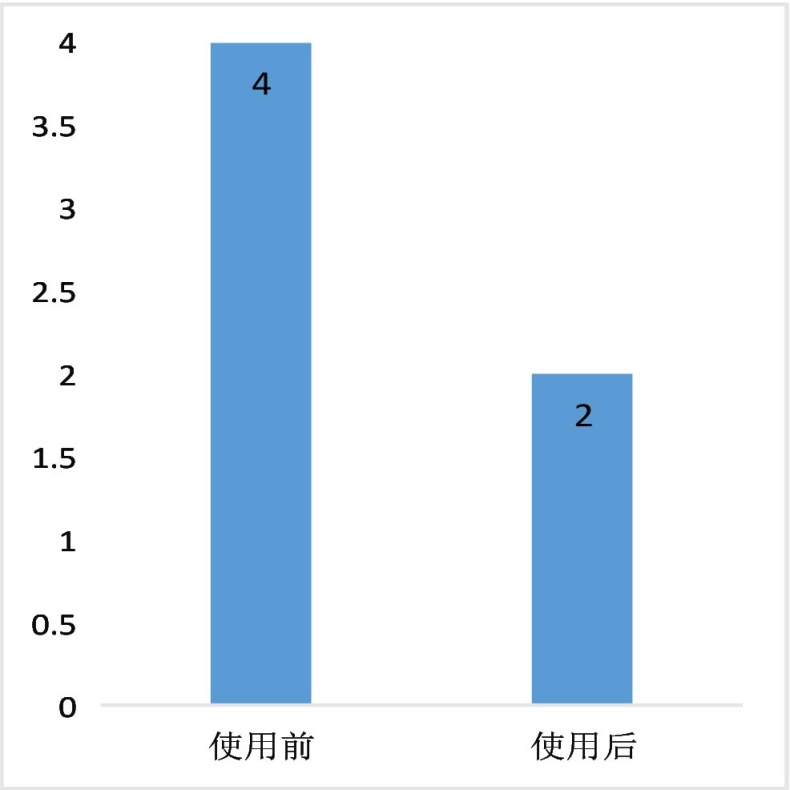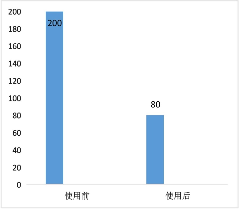 在使用教学管理信息系统前,科室需要打印理论课、见习课、教学查房的教案,需要在见习记录登记本、教学查房登记本、科室讲座登记本、病例讨论登记本等纸质材料上记录教学内容,使用教学管理系统后,以上记录均可以在教学管理系统中记录或上传。由图2数据分析表明,各科室每学期节约用于整理教学档案纸张120张,同时也减少了档案盒的使用、节约存放档案资料的空间。