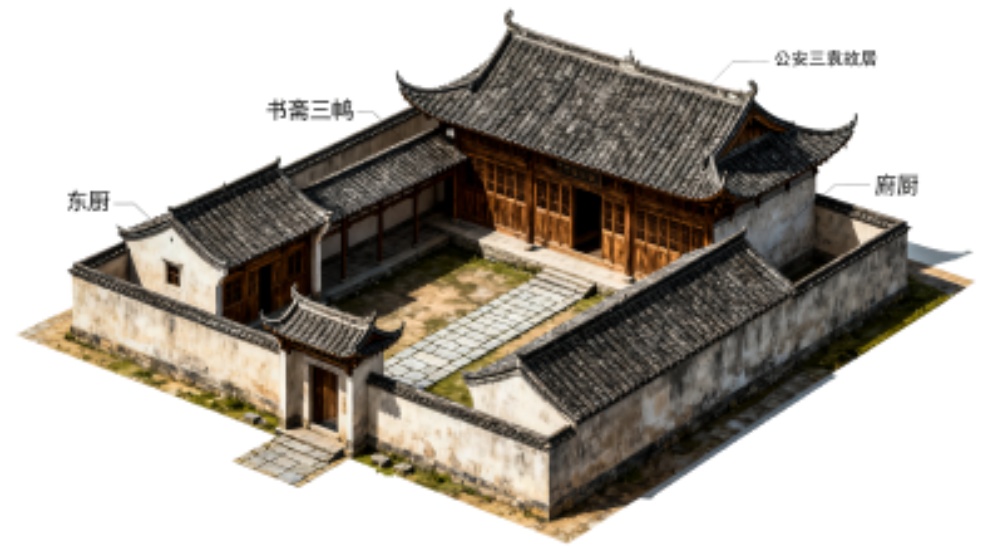 本研究采用混合研究设计,综合运用文献分析、实地考察、深度访谈及政策文本研究等方法。首先,系统梳理国内外名人故居保护与文旅融合的相关文献,构建分析框架。其次,对公安三袁故居遗址及周边社区进行为期3天的实地调研,通过参与式观察与空间测绘,记录现状地貌、建筑风貌及文化设施分布。为弥补单纯现象描述的不足,本研究对多方主体进行了半结构化访谈,包括当地文化管理部门负责人、三袁村社区代表、潜在游客及文史专家,获取其对故居价值认知、保护现状及发展意愿的一手资料。同时,搜集并分析《荆州市中心城区历史建筑修缮管理办法》等地方政策文件,评估现有制度对故居保护的支持与局限。例如,针对图3、图4所示的建筑立面与院落现状,访谈揭示了居民对风貌统一的矛盾心态及政策补偿期望,为对策设计提供了社会接受度依据。