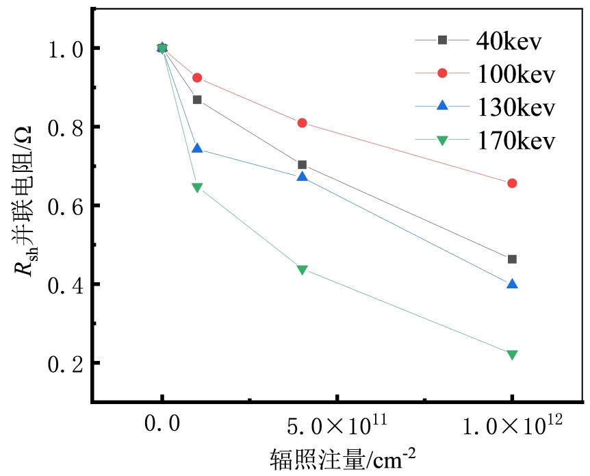 3.2. 低能质子辐照对并联电阻(Rsh)的影响