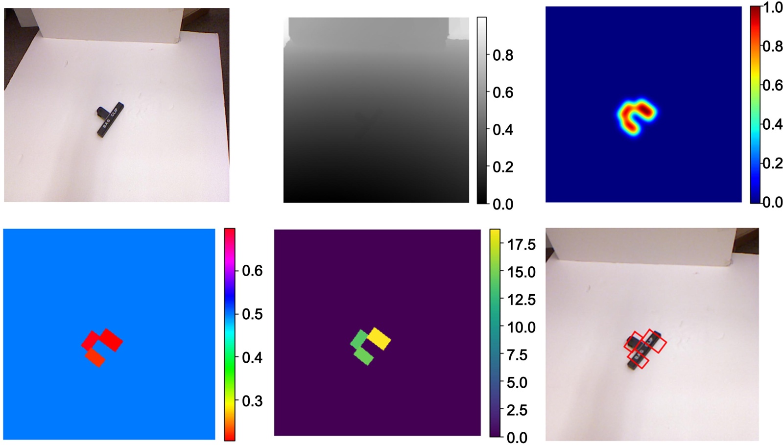 通过上述建模方式,抓取检测问题被转化为一个端到端,可训练的像素级预测任务,网络能够同时学习多种抓取属性之间的内在关联,从而生成更加一致和稳定的抓取结果。