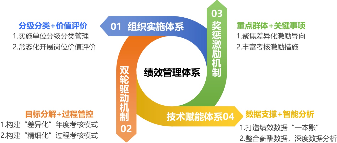强化落地保障,破解变革推进阻力。绩效管理体系落地实施需注重沟通协调与平稳过渡,充分考虑员工的接受程度,采用分阶段推进、多渠道沟通的方式,减少变革阻力。借助数字化工具提升落地效率,实现绩效数据的精准管控与透明化管理,为体系优化提供数据支撑。将战略目标、绩效考核与薪酬激励、人才发展深度绑定,结合行业特性设计差异化、可操作的实施方案,才能构建兼具公平性与激励性的全员绩效管理体系,为国有企业高质量发展注入持久动力。