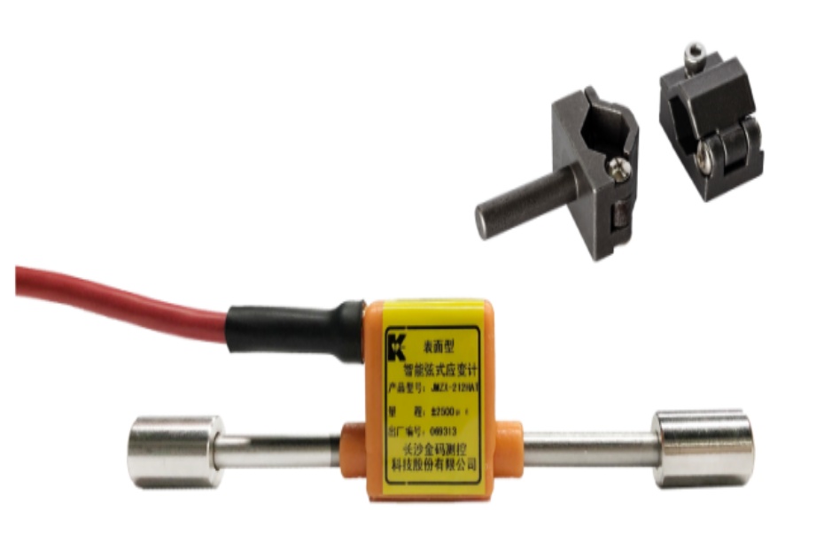 (a) 表面型智能弦式应变计 (b) 现场安装示意图