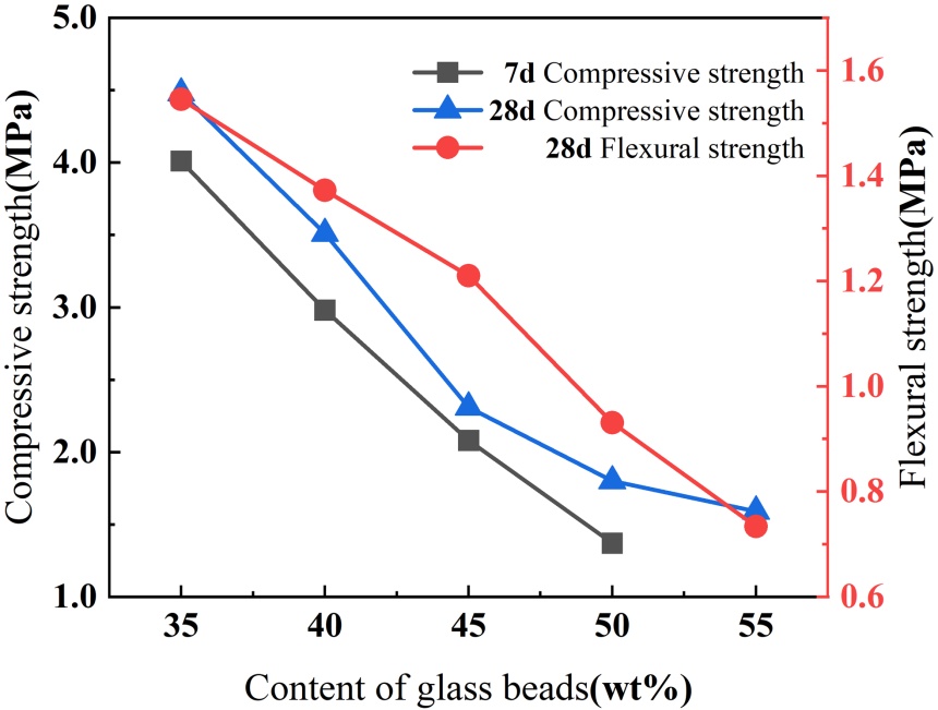 图5. 玻化微珠掺量对抗压强度和抗折强度的影响