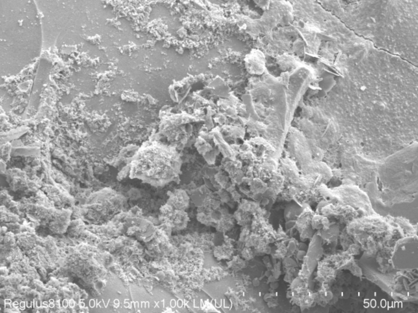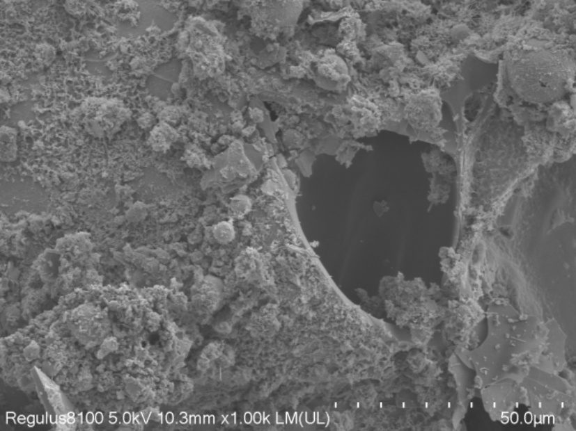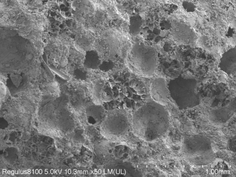 (b) 玻化微珠掺量45 wt%时保温腻子的SEM图