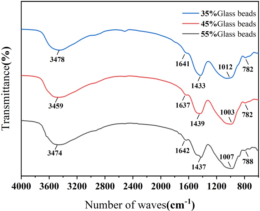 Figure 13. Infrared spectrogram of insulation putty under different proportions of glass microspheres