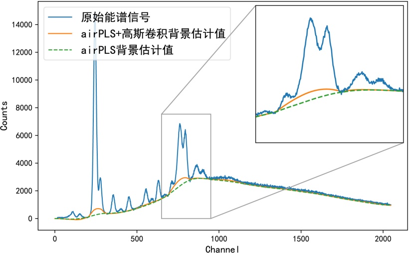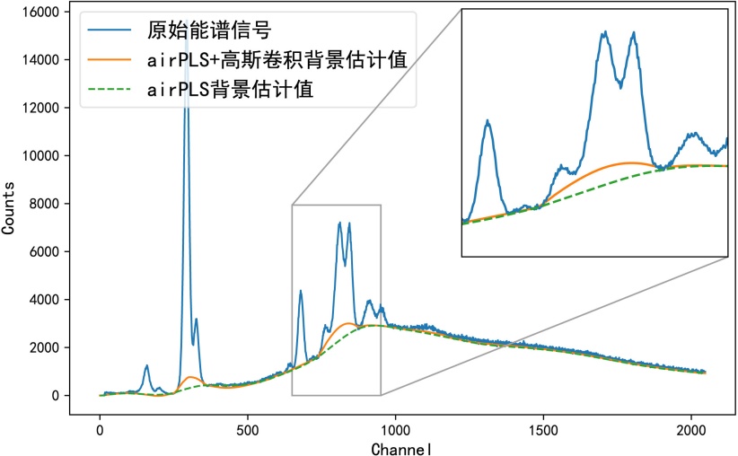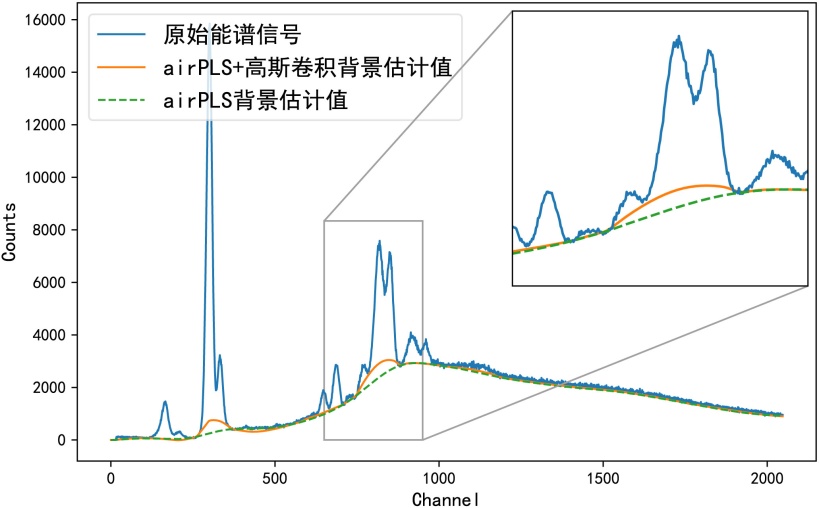 图3. airPLS与基于改进airPLS结合高斯卷积的背景估计算法对比