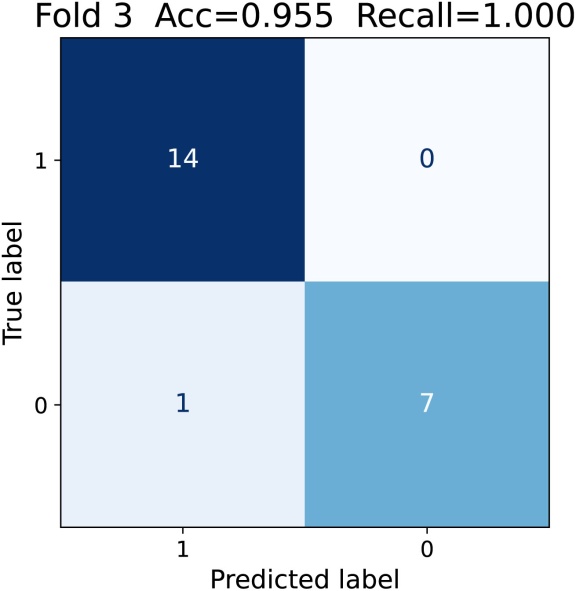 Figure 6. Confusion matrix of the accuracy of K-fold cross-verification of Zn element exceeding the standard (K = 3)