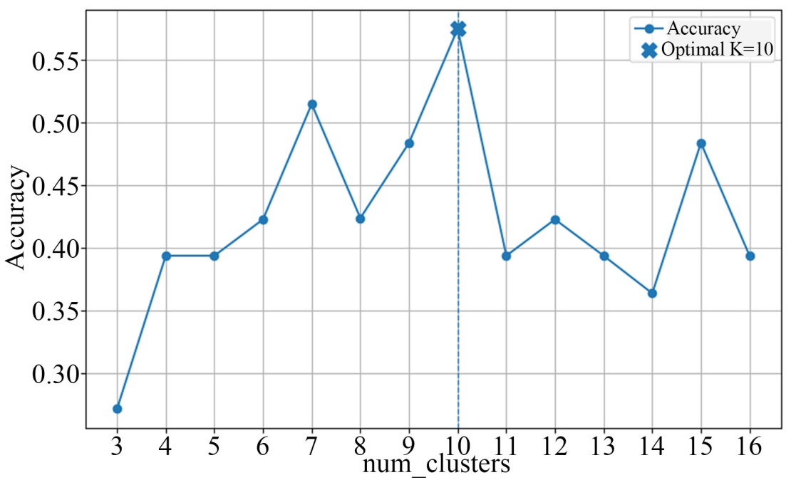 ,能够既清晰地区分各簇,又适度保留类别边界的模糊性,有助于对轻度、中度边缘样本进行正确分类。簇族数量设置为25可将样本空间划分为更多细粒度子区域,捕捉抑郁症状在音频与语言表达上的微细变异。