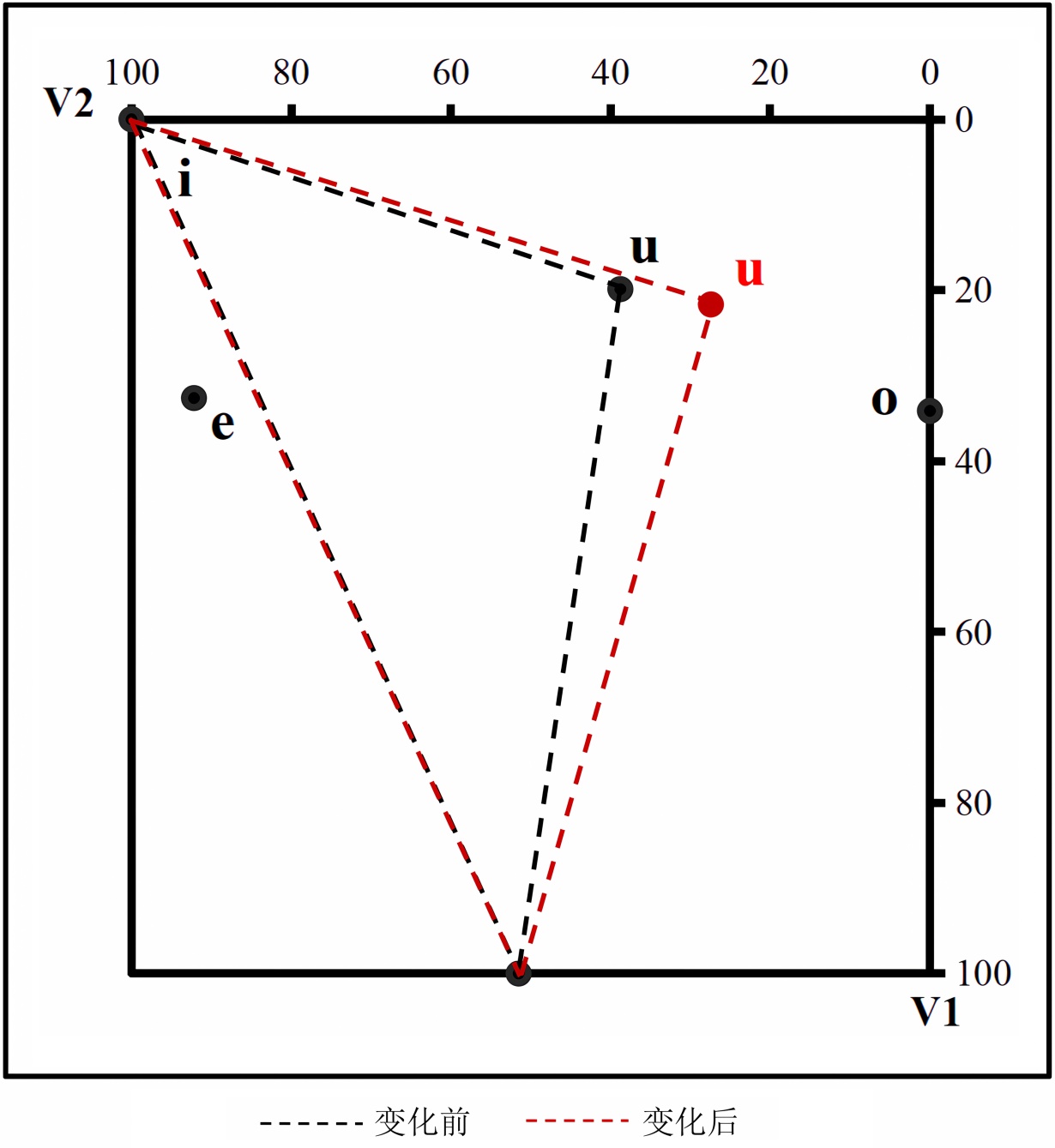 Figure 9. Changes in vowel pattern chart before and after excluding “shui (water)”
