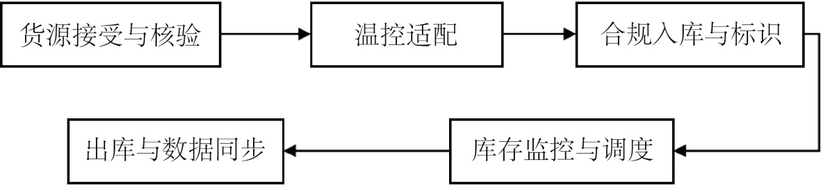 跨境仓储是跨境冷链物流的核心枢纽,覆盖境内集货仓、境外仓、境内保税仓等多节点,承担货品接收、温控调整、合规入库、库存调度及出库衔接等关键职能,其流程的顺畅性直接影响货品品质与周转效率。仓储完整流程如图2所示。