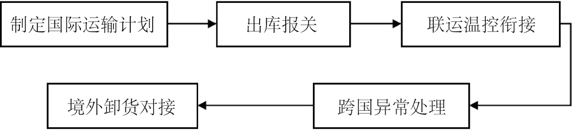 运输环节是跨境冷链物流的跨区域衔接核心,需整合跨境路线规划、多式联运切换、温控持续保障及应急处置等关键动作,既要适配不同运输载体的温控标准,也要应对跨境途中的各类不确定因素。跨境冷链运输的流程如图3所示。