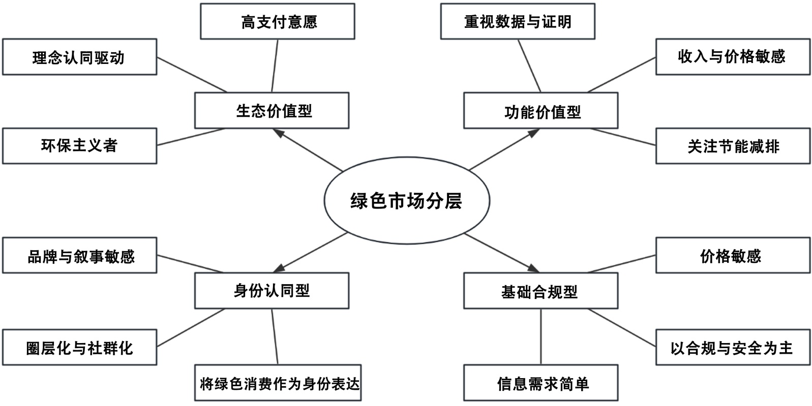 绿色市场的内在异质性,根源在于消费者群体在价值观、行为模式与经济特征上的系统性分化。因此,本文对于绿色市场的划分,其核心依据正是对消费群体的科学细分。经济学中的需求弹性理论与社会学中的身份认同理论为本文的绿色市场分层提供了坚实的理论依据[6]。