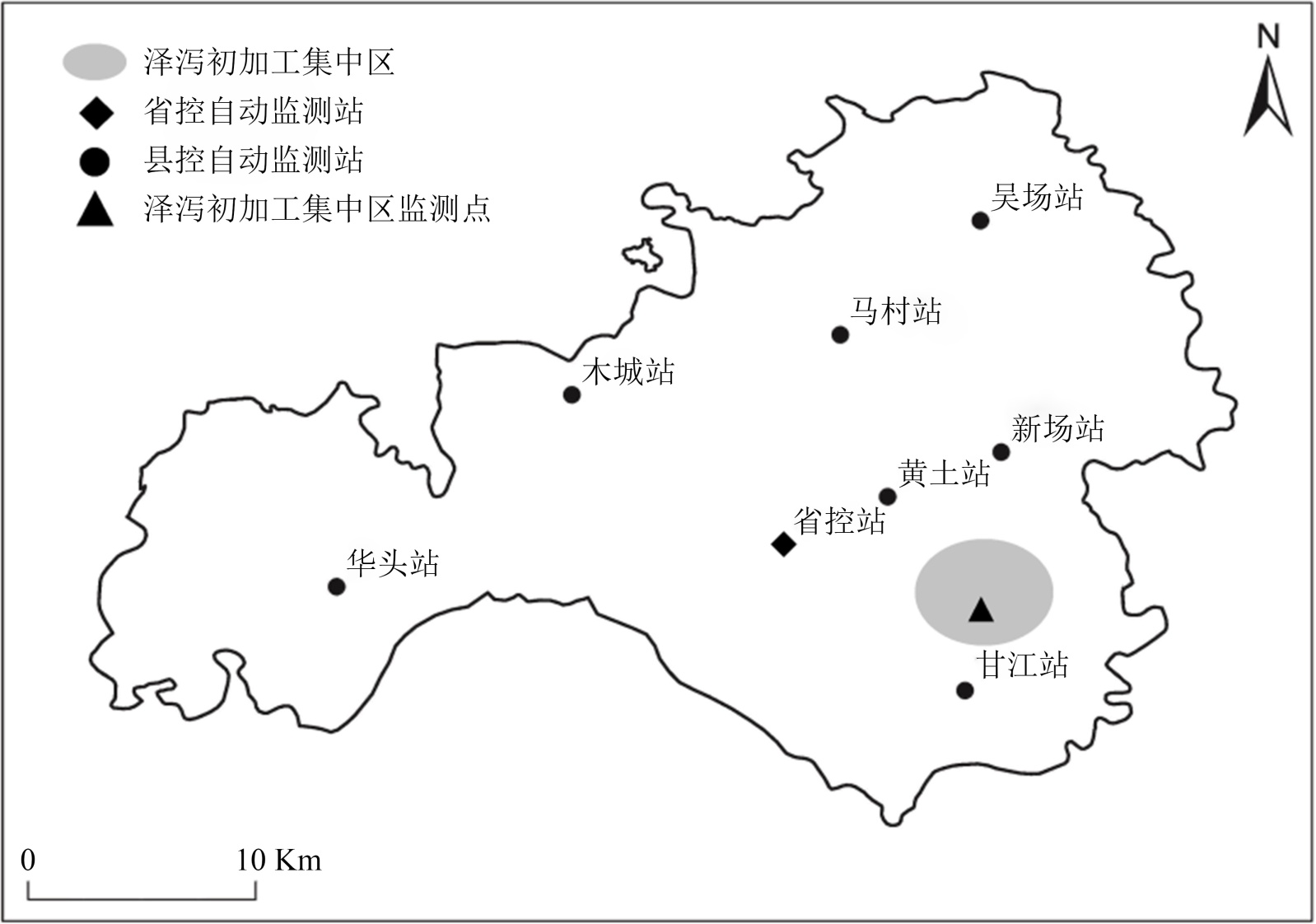 Figure 1. The Alismaorientale primary processing zone and different monitoring stations in Jiajiang County