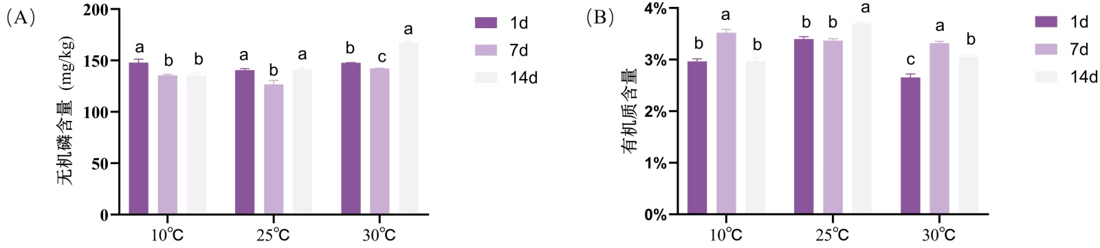 图6. 温度对沉积物无机磷(A)和有机磷(B)的影响