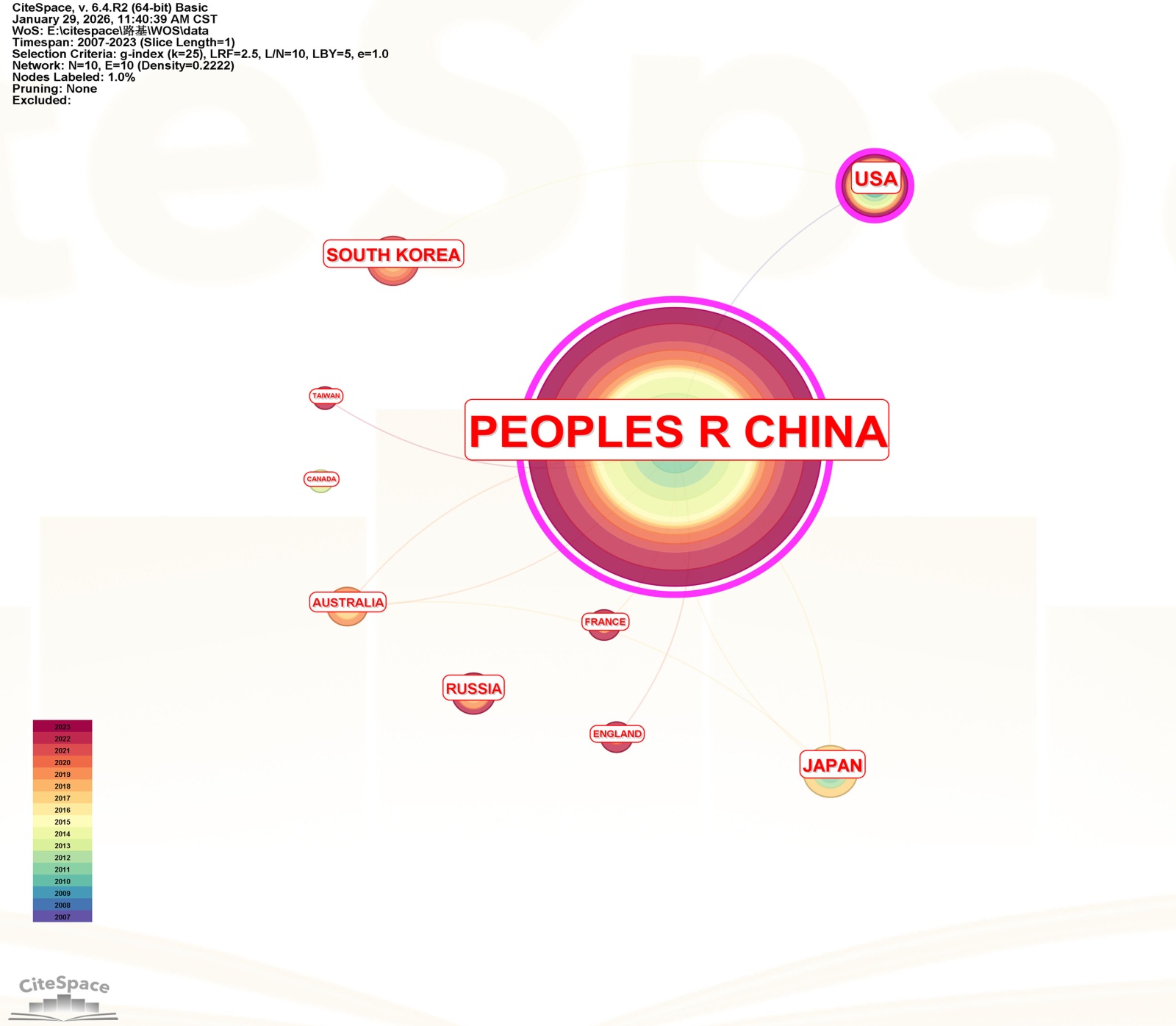 图5. 英文样本文献的国家合作网络图谱