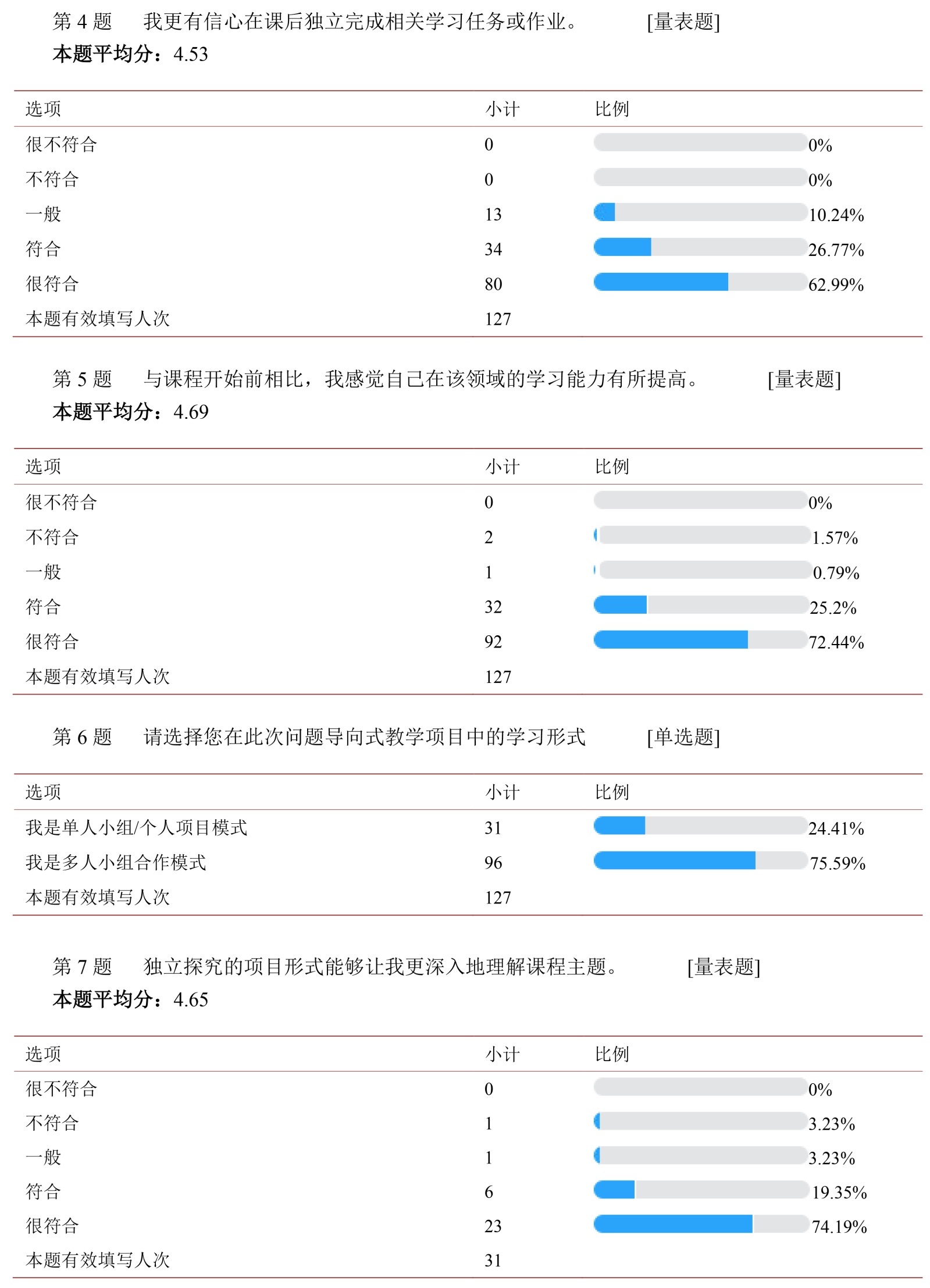 5. 教学反馈分析:学生学习体验与自我效能感的问卷结果