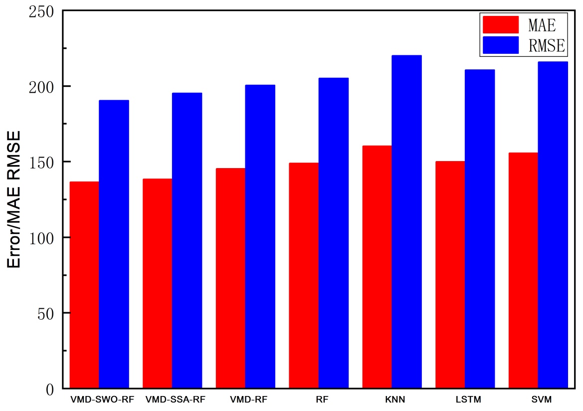 Figure 10. Comparison of MAE and RMSE error results among different models