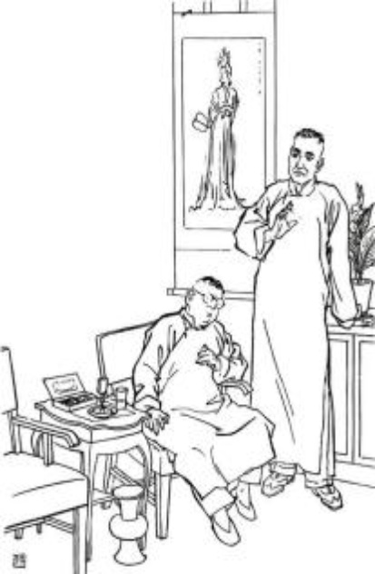 叶浅予善于通过线条语言精心勾勒人物性格的动态演变,吴荪甫的形象最具代表性。