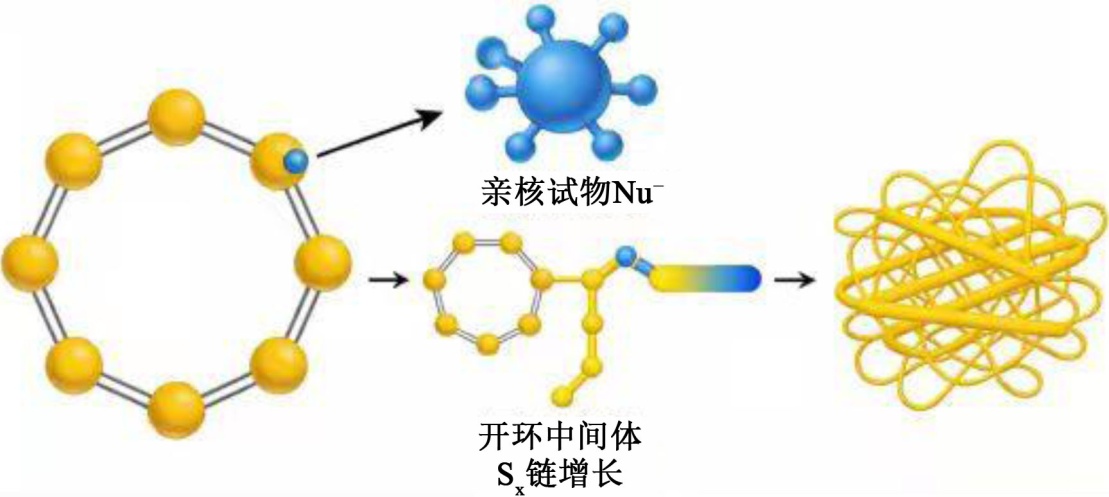 (1) 反应机理见图1所示:化学溶硫强调“反应溶解”。可用机理文字描述:亲核试剂Nu− (如胺、硫代阴离子)攻击S8环某一硫原子,形成开环中间体并进一步增长为Sx链,生成可溶的多硫化物/有机多硫化物,从而将低溶解度的环状S8转化为更易溶解/分散的链状或络合形态。