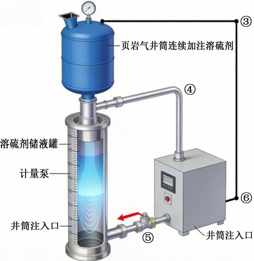 图3. 页岩气井筒连续加注溶硫剂的典型工艺流程图