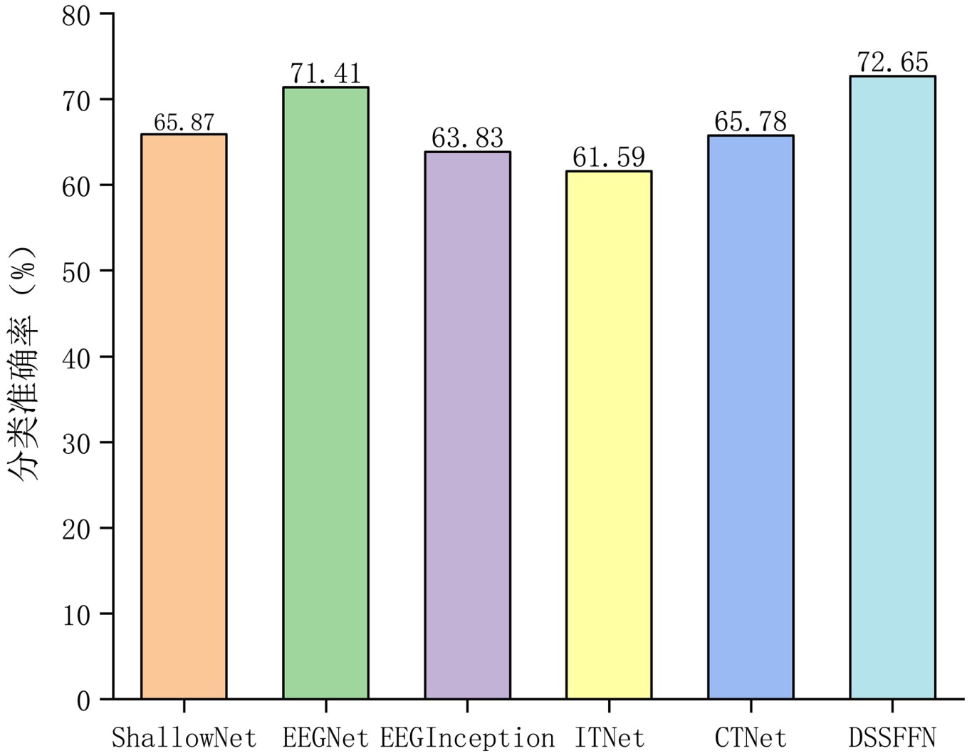 表1. DSSFFN与对比模型在各受试者上的分类准确率