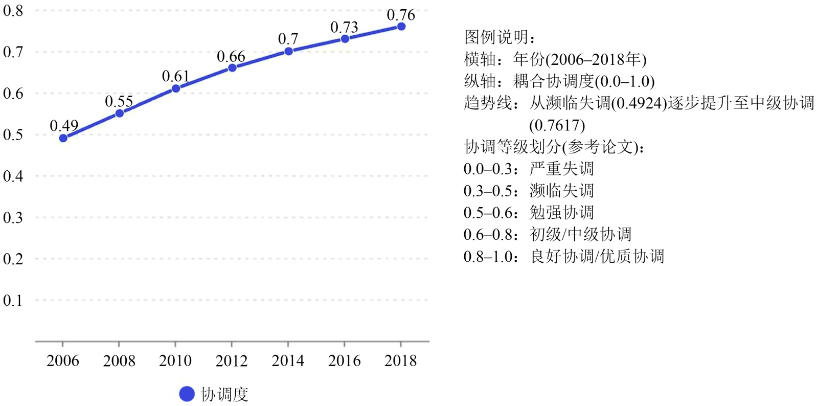 图1. 长海县渔业与旅游业耦合协调度变化趋势(2006~2018年)