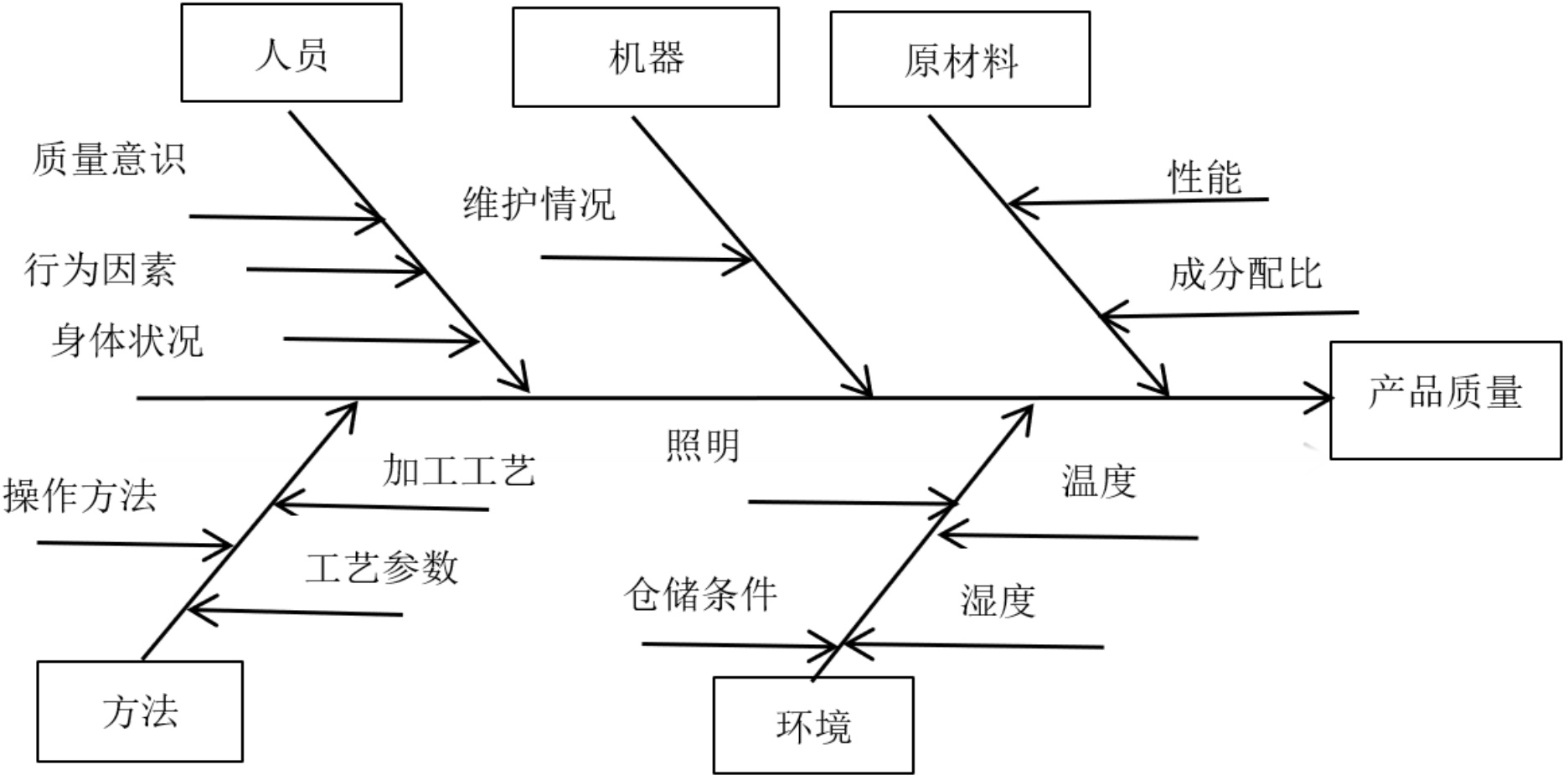 本文采用多主体建模与仿真方法构建产品质量损失涌现模型。依据全面质量管理理论,明确了影响产品质量形成的五个关键因素,即人员、机器、原材料、方法以及环境。其中,人员方面涉及质量意识、行为因素和身体状况;机器因素包括维护情况;原材料涵盖性能与成分配比;方法涉及操作方法、加工工艺和工艺参数;环境则有照明、温度、湿度以及仓储条件等,这些因素对产品质量的具体影响关系如质量影响因子分析图所示。在模型构建过程中,借助Netlogo仿真平台,对上述五个因素影响产品质量损失的程度和趋势进行动态模拟,从而深入研究产品质量损失涌现现象,为产品质量控制提供理论和实践依据。质量影响因子分析如图1所示。