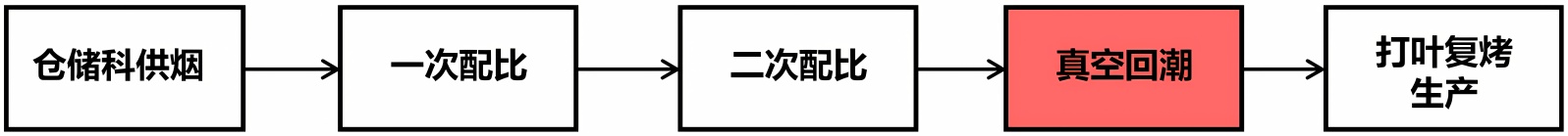 水份含量低于16%~18%的比例达到71.1%,对此,项目组成员结合烟叶组配生产实际及水份含量情况,决定利用真空回潮工序的前移,对来料烟叶水份低的情况进行改进[11] [12],改进前后的流程变化如图5和图6所示。
