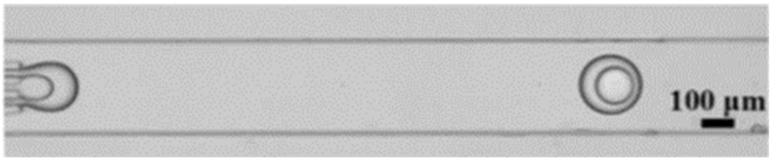 Figure 3. Drop-flow mode of the double emulsion droplet experiment [26]