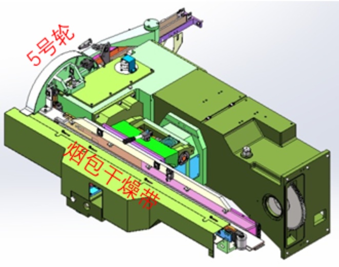 GDX500小盒包装机小包成型后经过干燥带干燥后,依次进入5号轮将成型小包输送至下一道工序,如下图所示,成型小包在5号轮上顺利转移是其进入下一道工序的重要保障。如图1所示。
