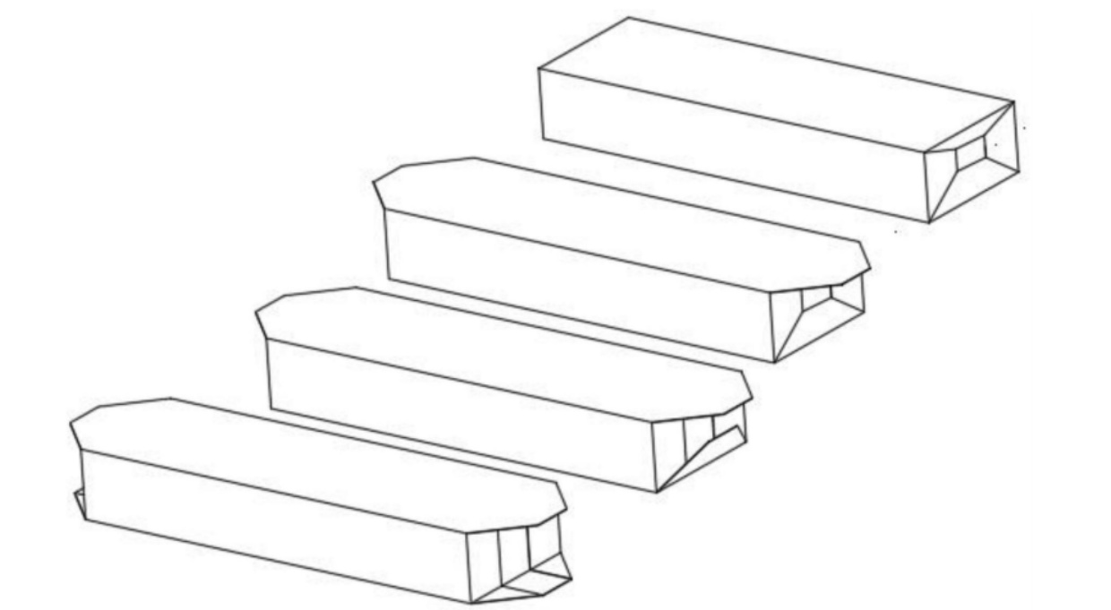 (3) 折叠器两个螺旋折叠面之间增设了一块衬板,一方面可让后续折好的折角不松动变形,另一方面折叠后的折角上、下、左、右对称平整,角度呈45度,从而提高了条烟盒的包装外观质量。