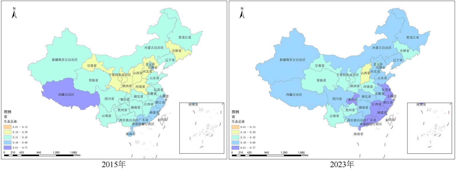 洛克菲勒基金会–柳叶刀行星健康委员会认为,饮食结构在改善健康和减少食品生产对环境的影响方面具有巨大潜力[16]。本研究通过对1990年至2023年全国及各省、市、区(除港、澳、台地区)居民膳食模式及其环境效应的综合分析,揭示了中国快速城市化和经济发展背景下膳食结构变化对环境和公共健康的深远影响。这一研究不仅填补了现有文献中关于中国膳食模式环境效应的长期动态变化的空白,还为理解全球食物消费模式转型提供了重要的区域性案例。