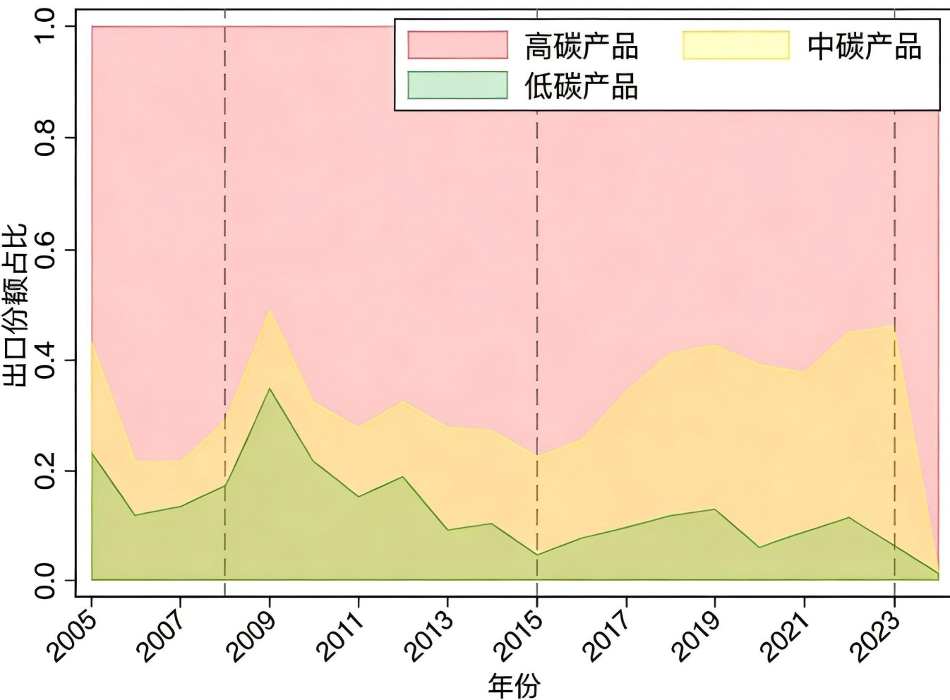 图2. 钢铁出口产品碳强度结构堆叠面积演变